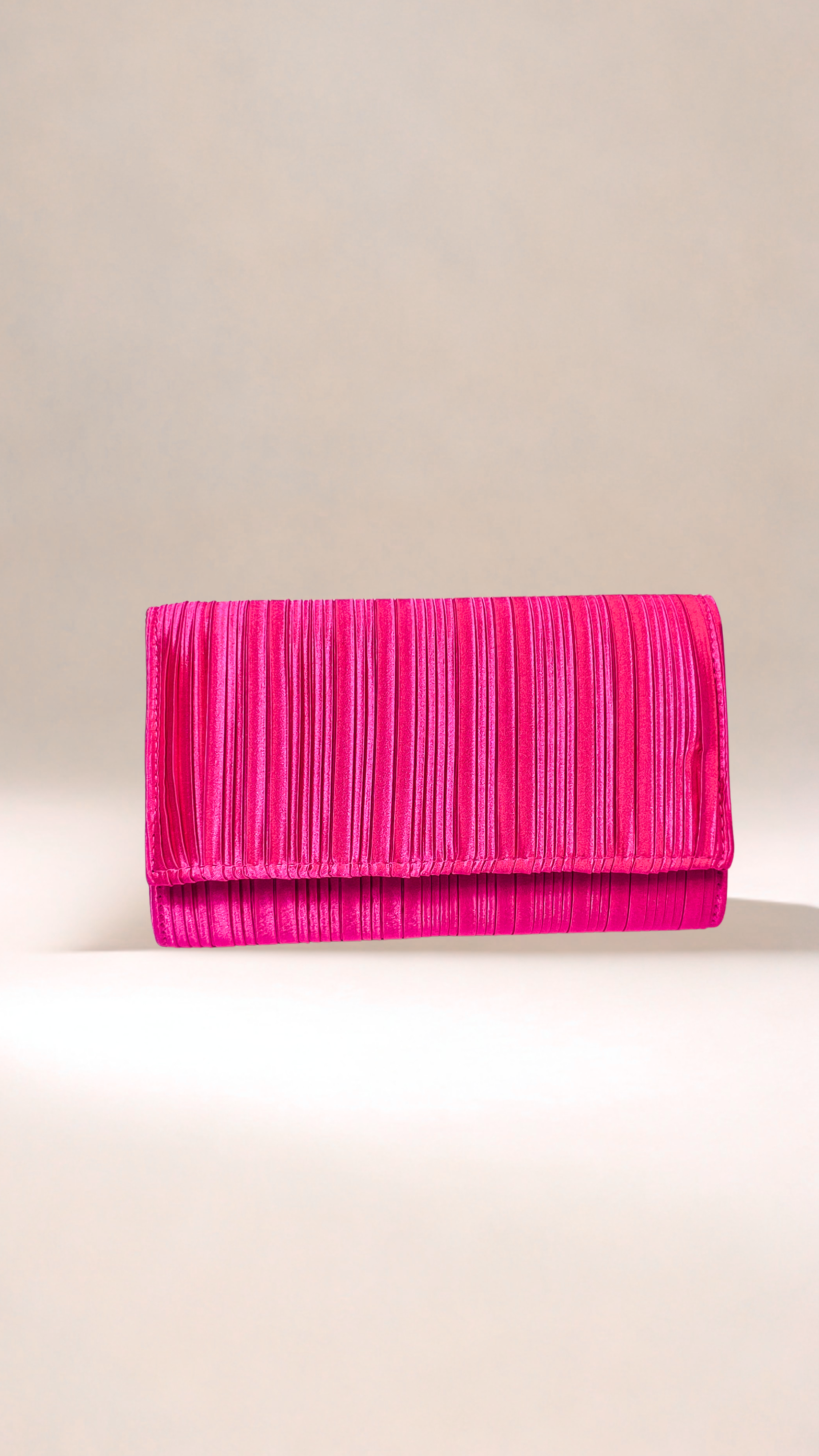 Enhance your style with this sleek satin clutch in fuchsia pink.