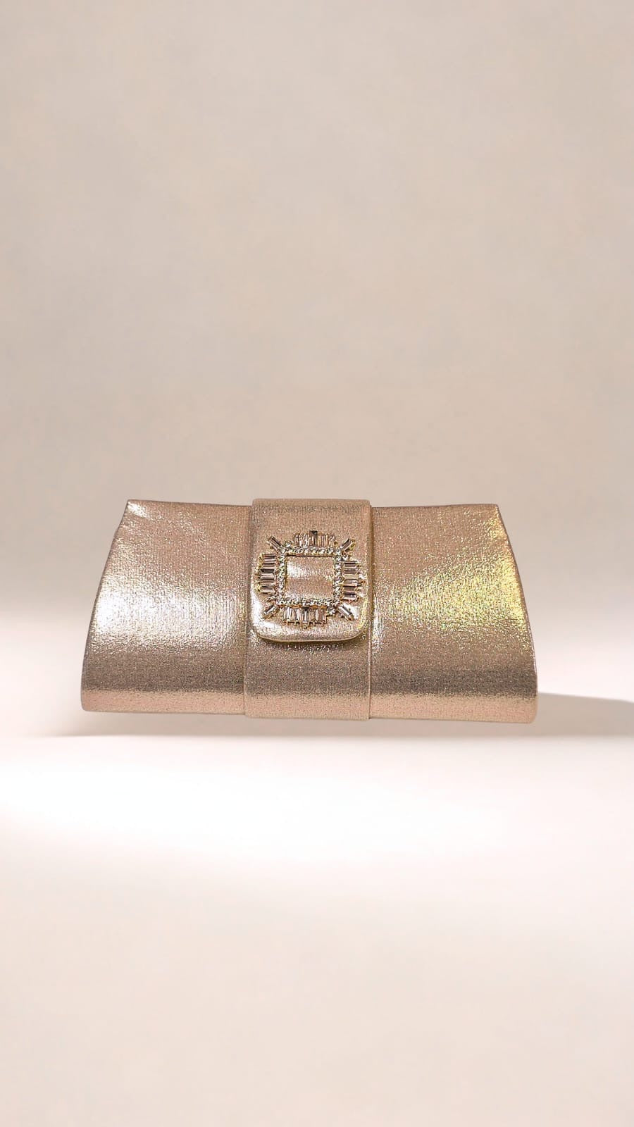 Elevate your look with this elegant gold satin clutch, perfect for adding a refined touch to any outfit.