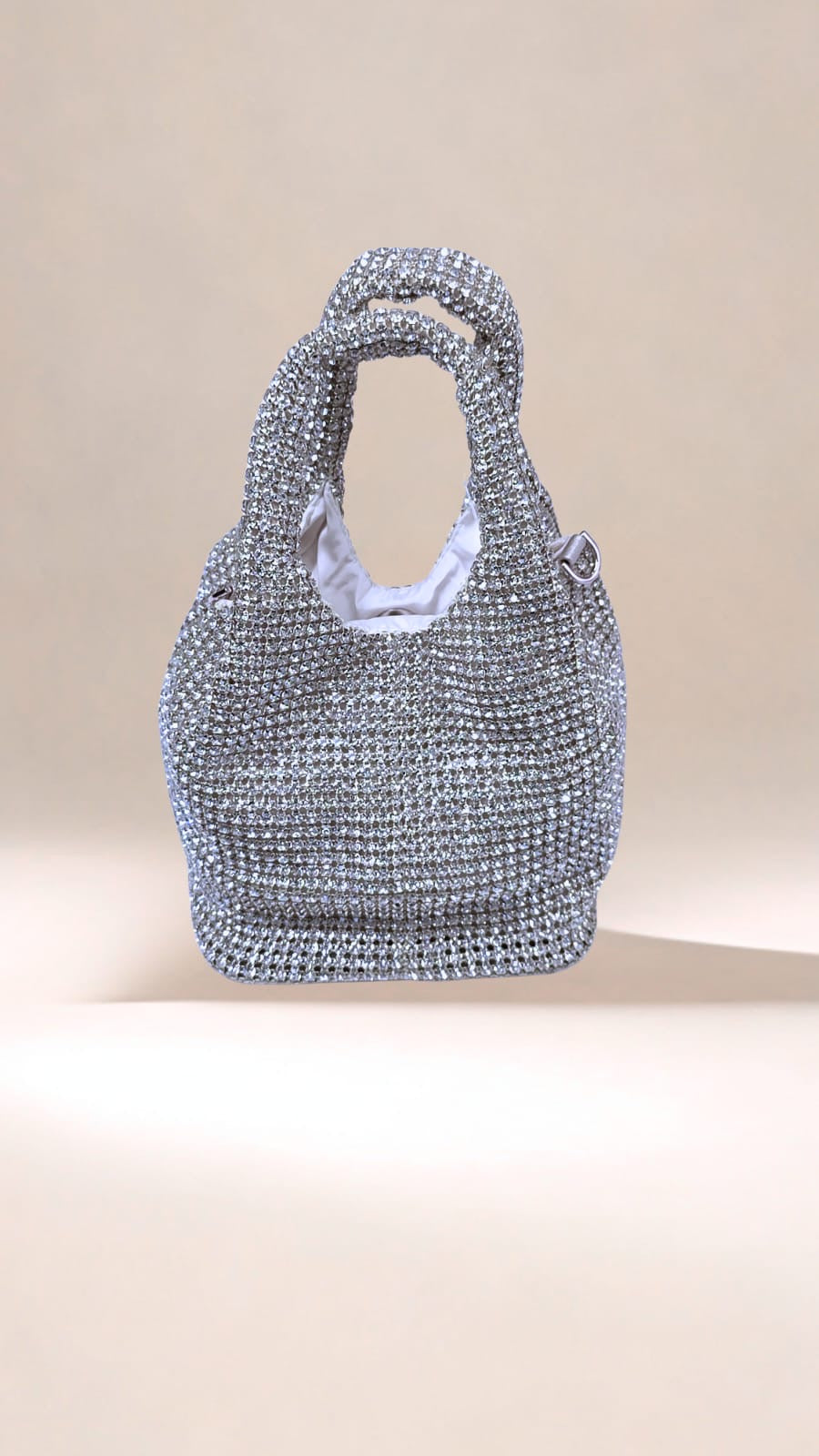 Add a dash of sparkle to your outfit with this playful silver clutch, sprinkled with dazzling diamond details. Small but mighty, it’s perfect for keeping your essentials close while you steal the spotlight at any event. Shine bright and have fun flaunting your fabulous style!