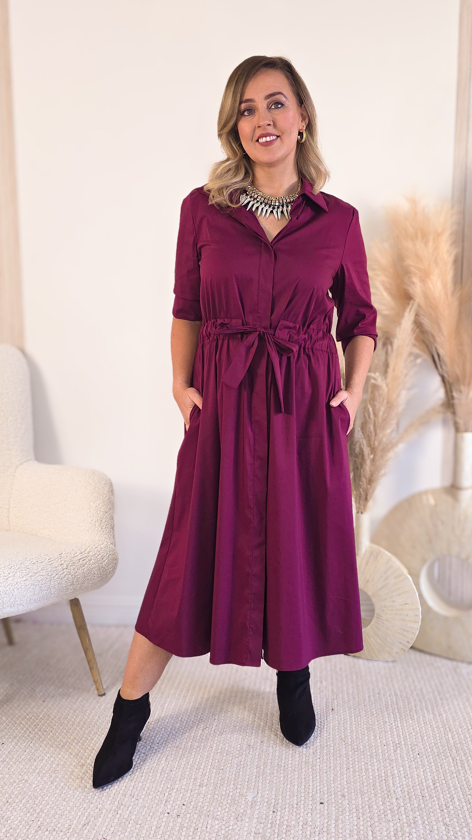 The Selena dress offers a comfortable shirt-style fit designed to make you feel confident and at ease all day.