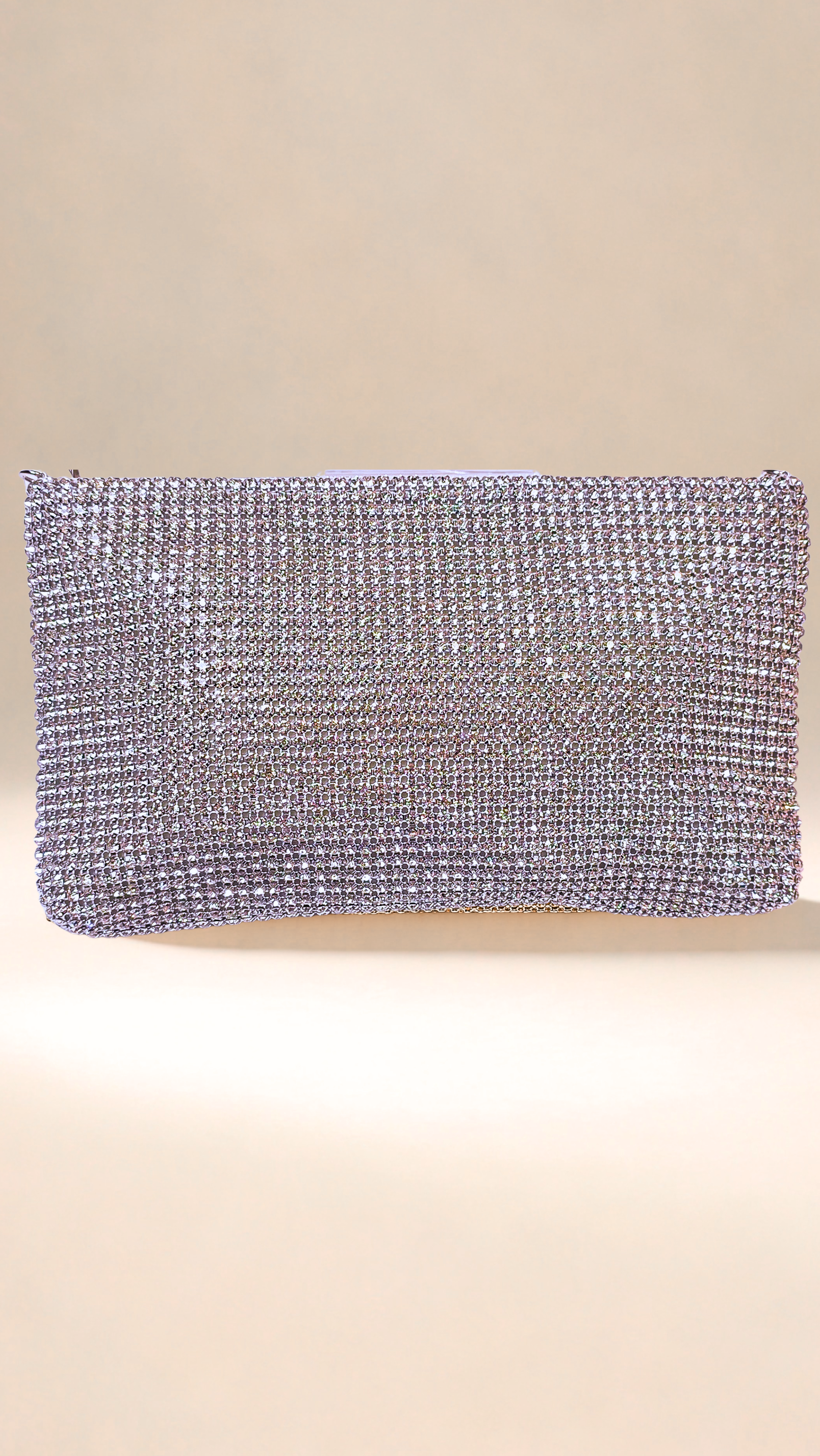 Elevate your style with this dazzling diamond-inspired clutch in shimmering silver.