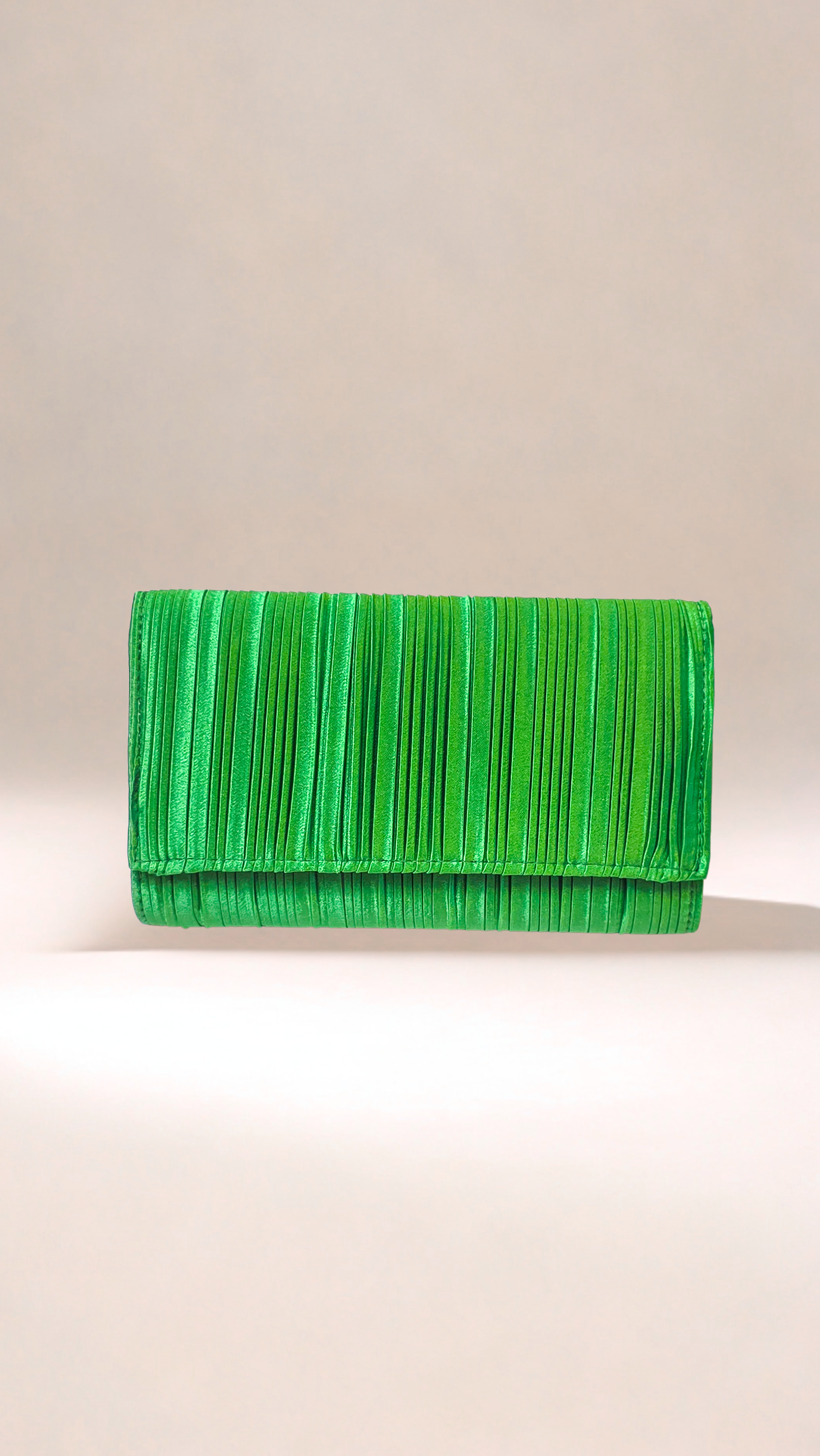 Enhance your style with this sleek satin clutch in green.