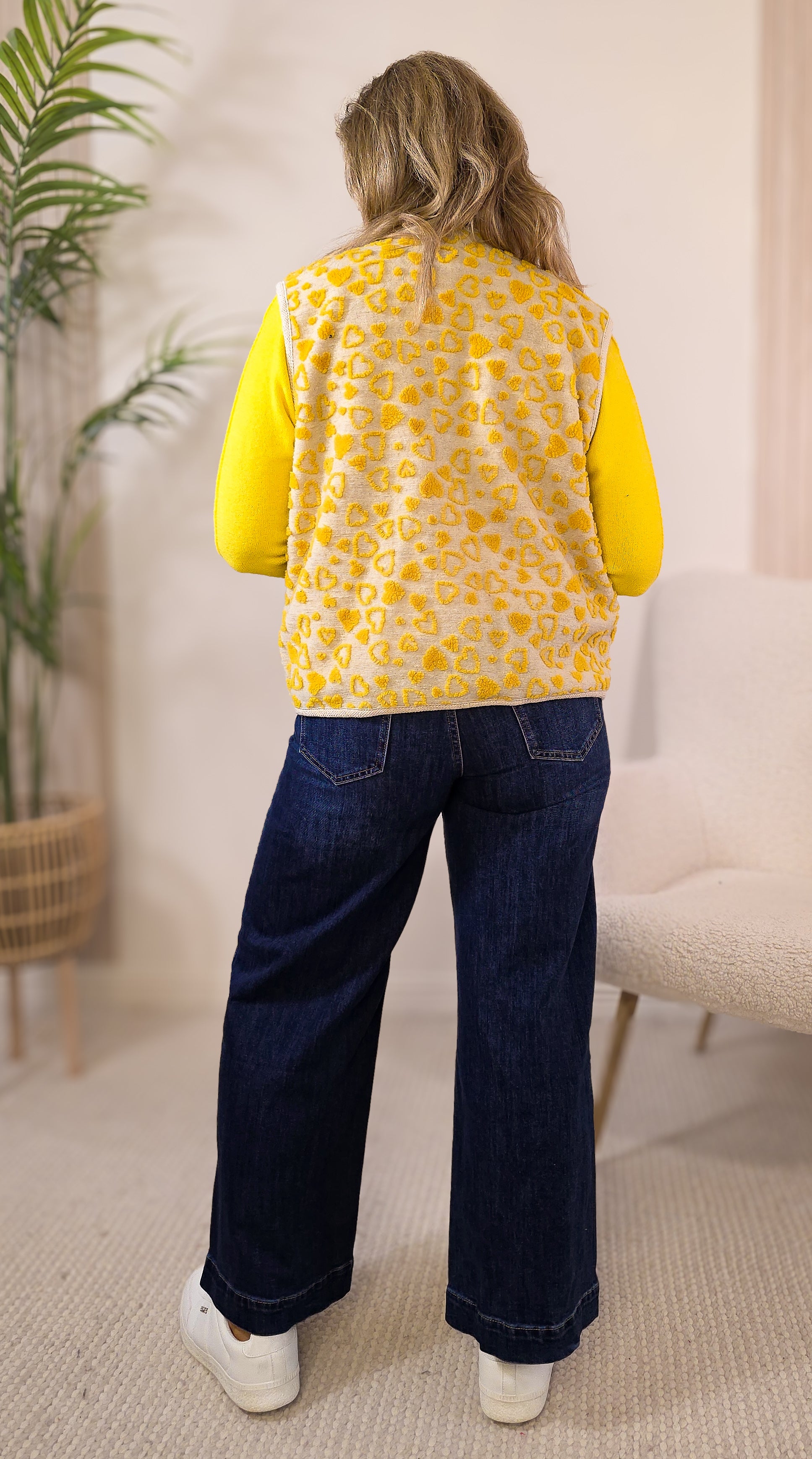 Introducing the Harlow Waistcoat. Perfect for those who love a playful touch! Featuring a heart print throughout, this waistcoat is just what you need to elevate your spring wardrobe.