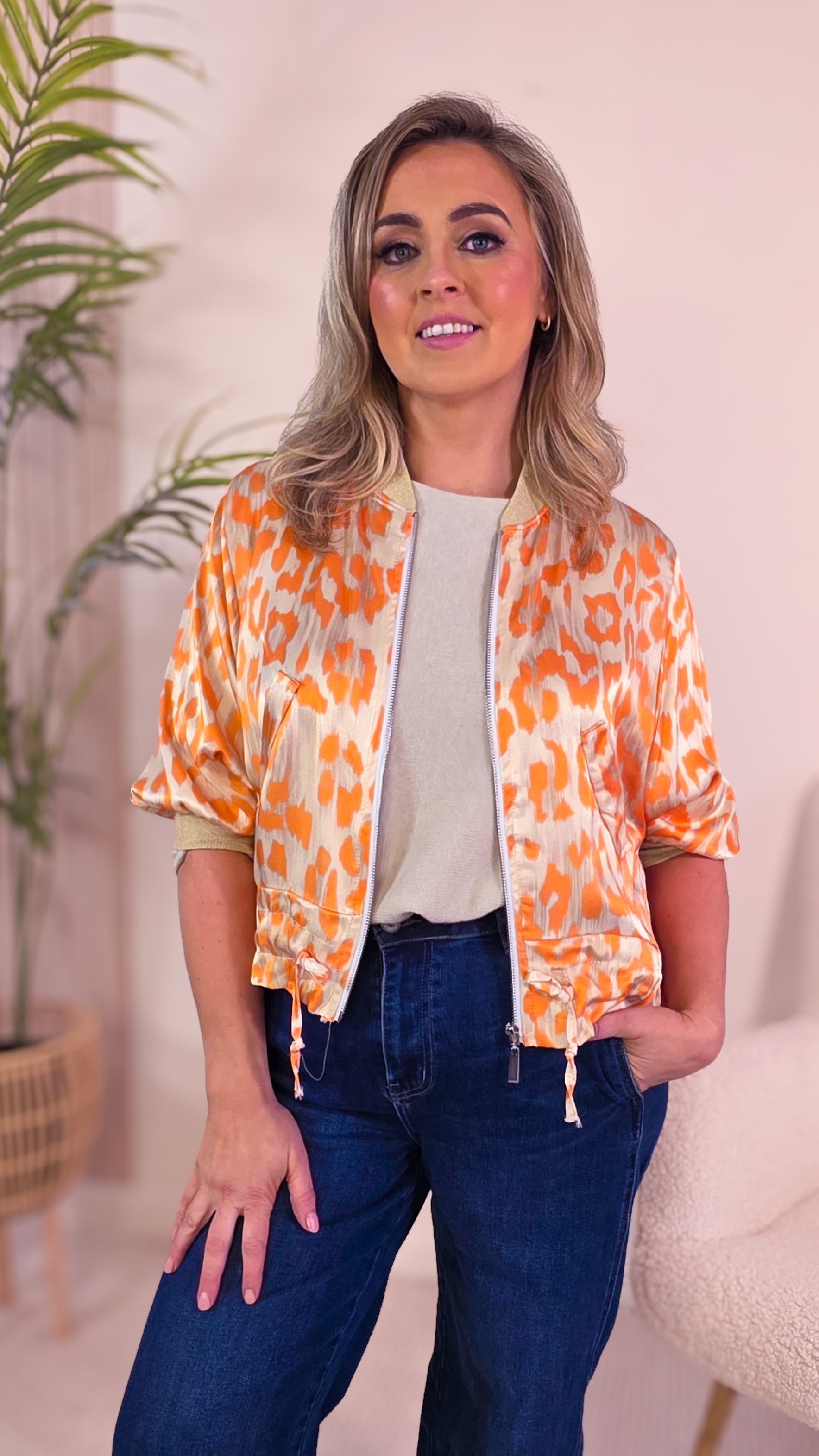 Make a statement with the Tammy Bomber in orange leopard print—a versatile layer that transforms any look. Whether you're styling it with its matching trousers or as a layering piece this jacket will deliver both comfort and confidence. The timeless bomber shape ensures you'll reach for it season after season, making it a wardrobe essential worth investing in.