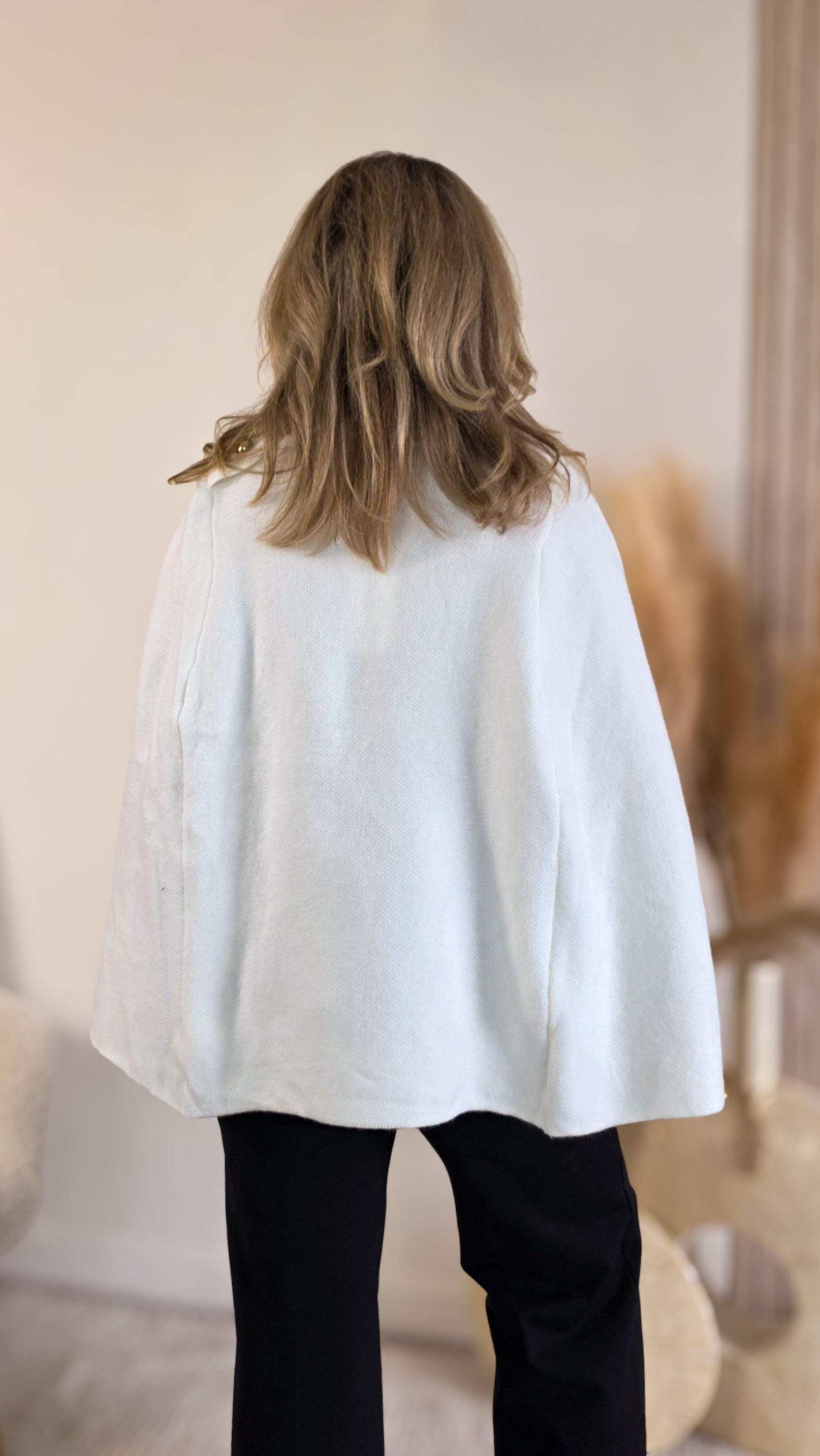Rebecca Knit Cape- White