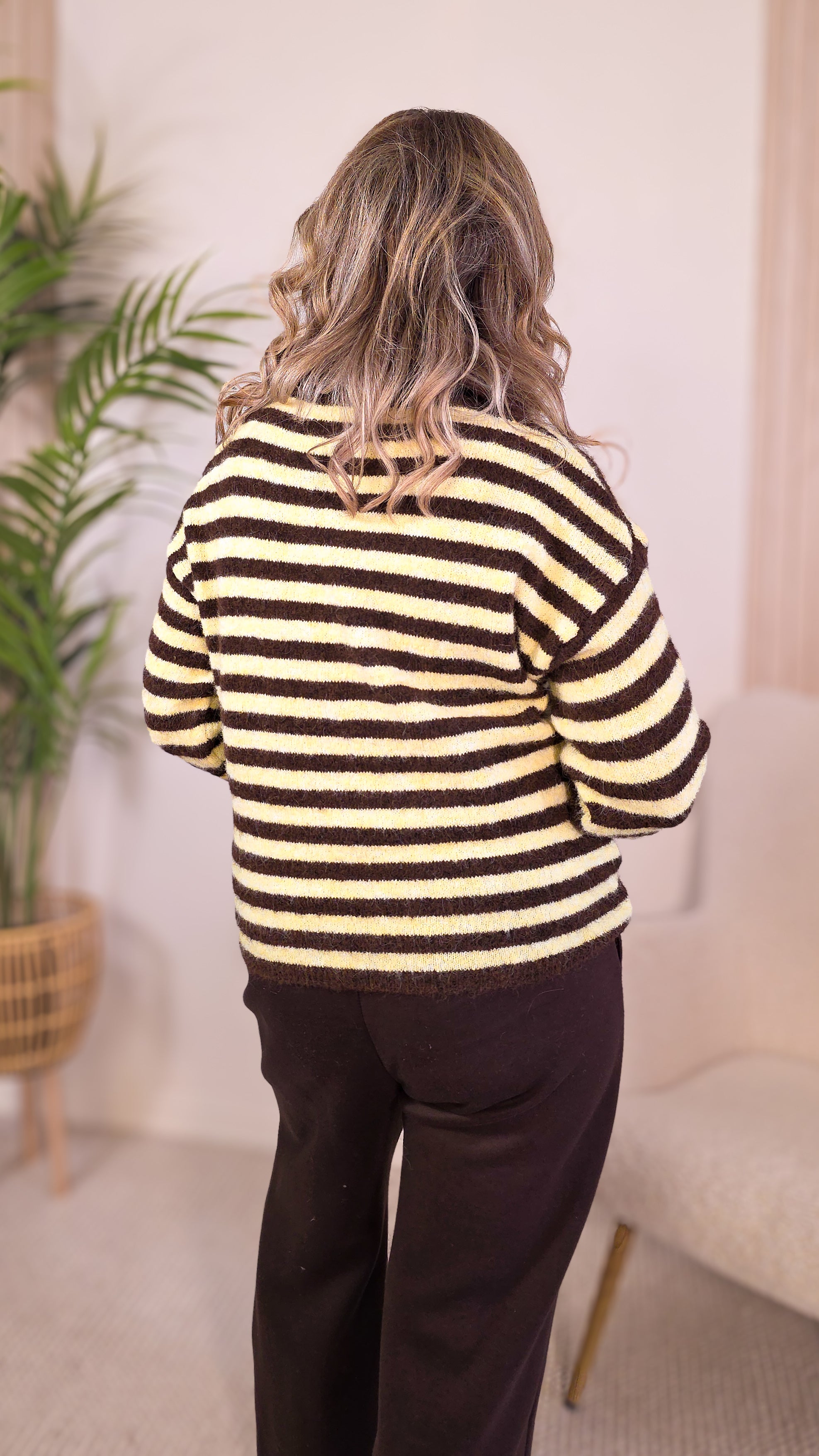 This striking polo features a classic collar silhouette in a bright yellow and brown striped pattern. Perfect for layering or wearing solo, the Carley delivers timeless style with a contemporary edge. The colour combination works beautifully across seasons, making it a versatile addition to your wardrobe that pairs effortlessly with your favourite pieces.