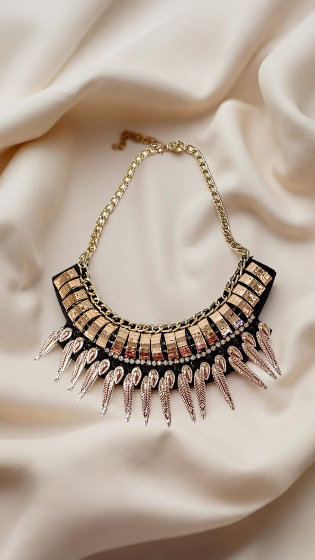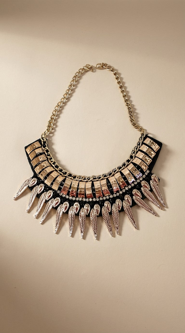 Lightweight, gold and black statement neck piece