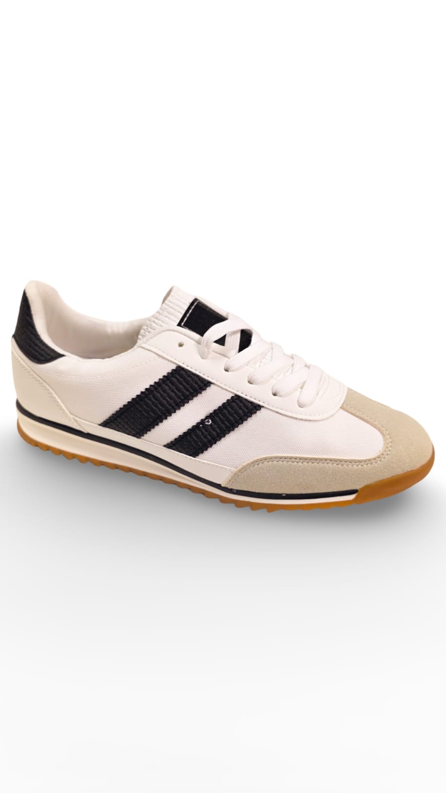 Introducing Libby Runner - White, featuring a sleek black stripe detail along the side for a stylish touch.