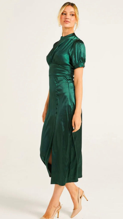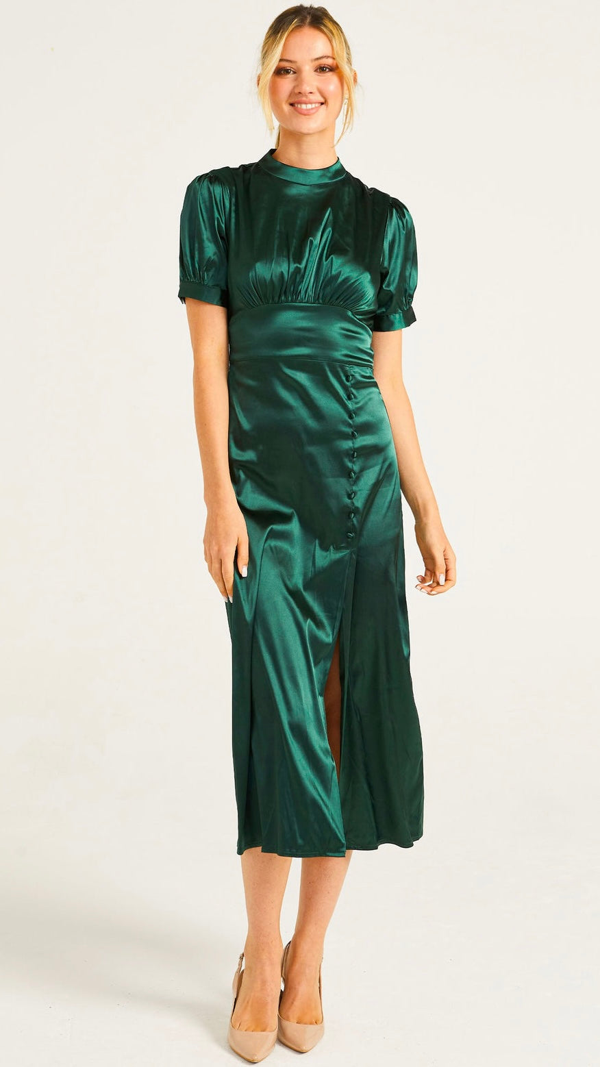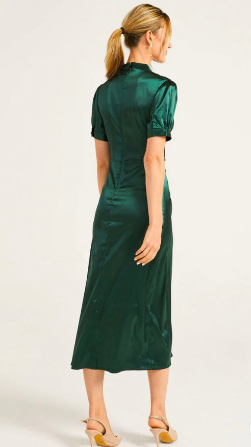 The Rosie Dress is a gorgeous shade of green and classy satin feel .