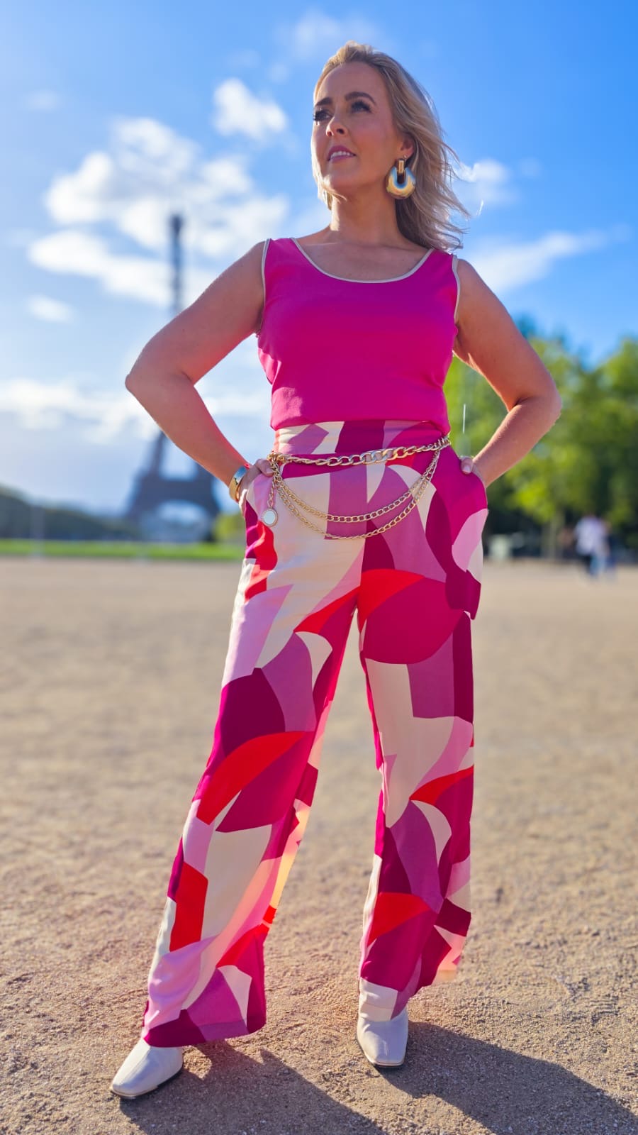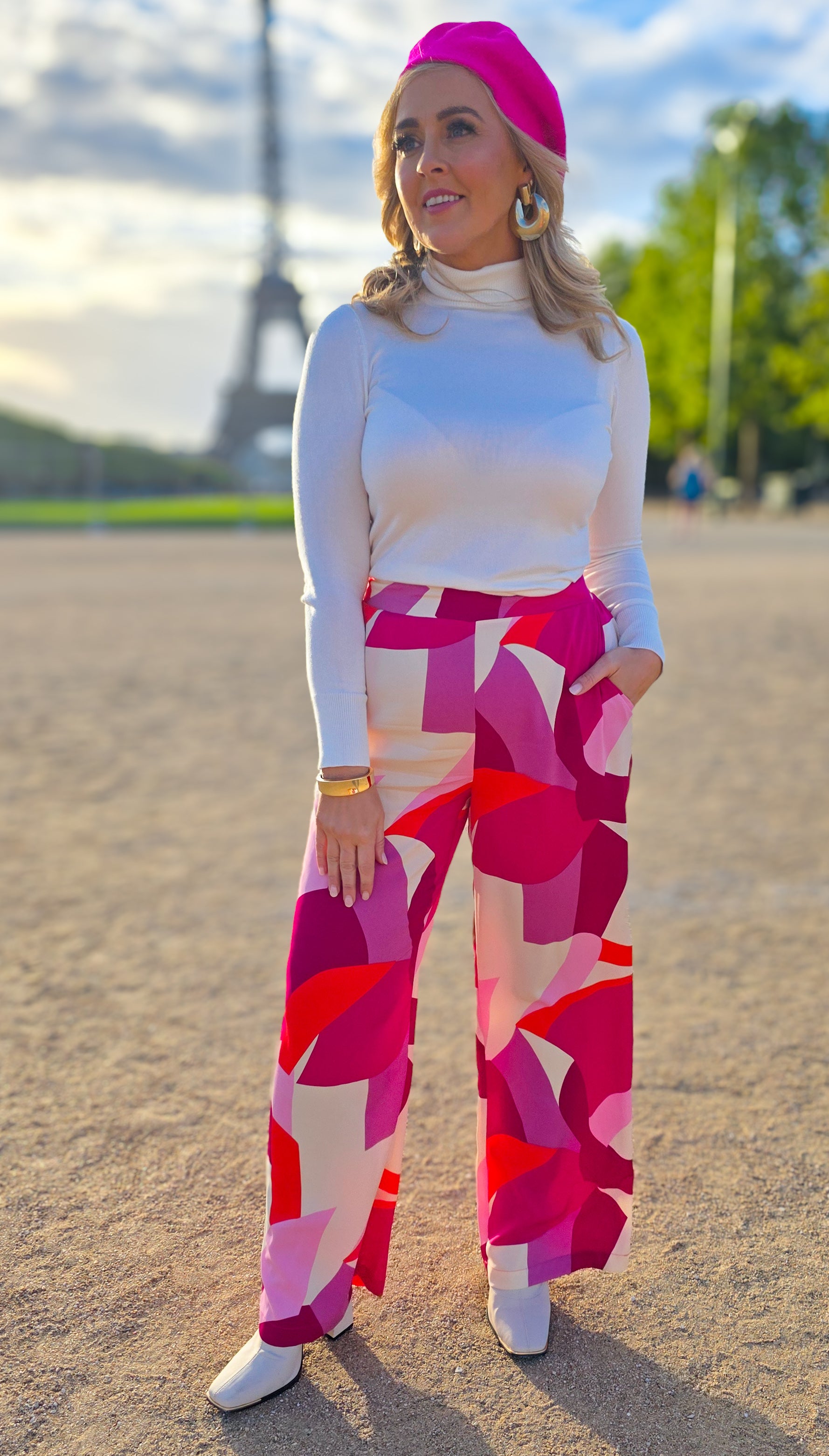 Experience the stylish comfort of the Riley Trousers. These bold pink wide leg trousers feature a stretch waistband on the back for the perfect fit.