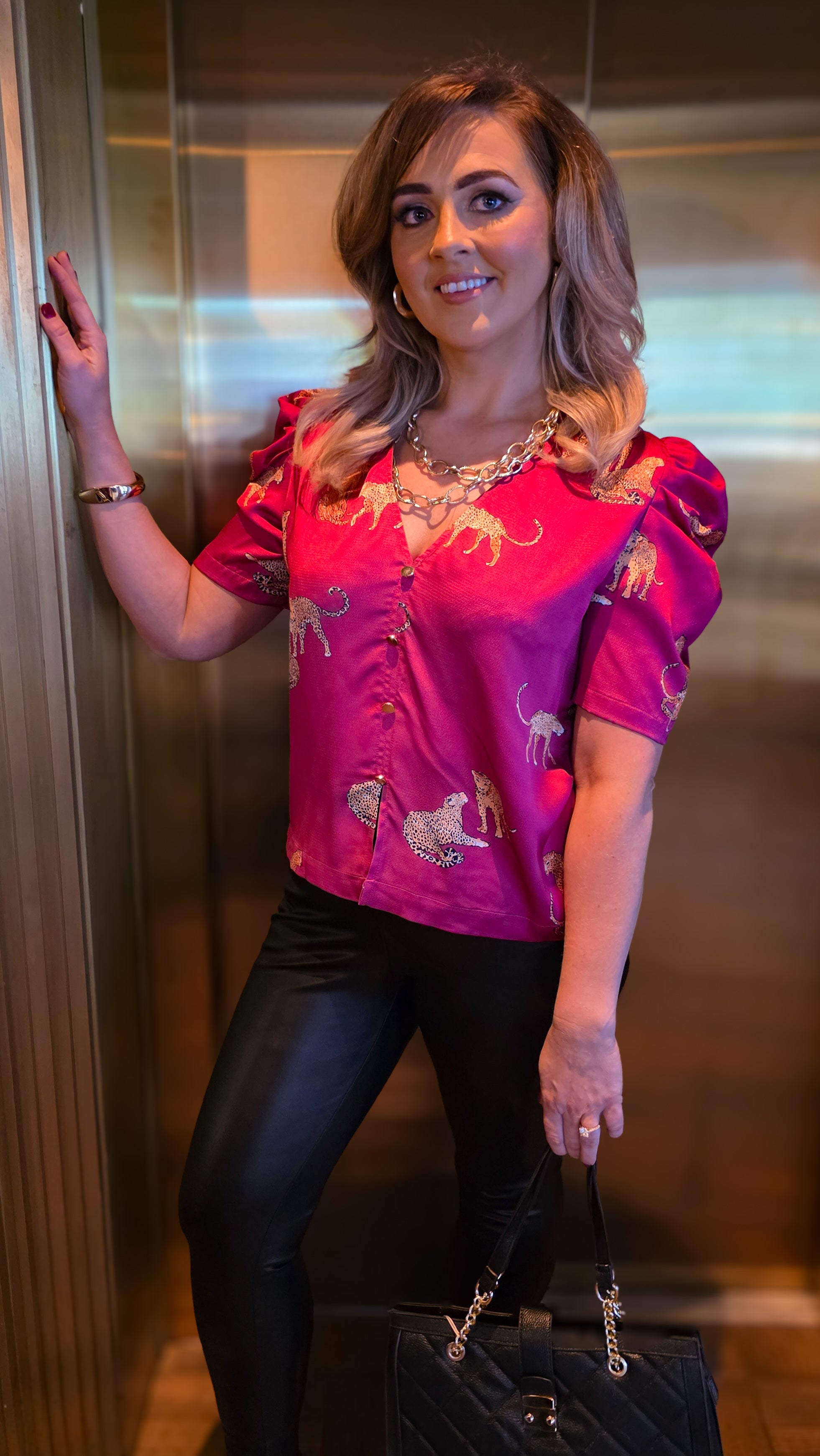 The Ruby Top is a beautiful button-down blouse designed to be worn both frontwards and reversed for versatile styling. 💕