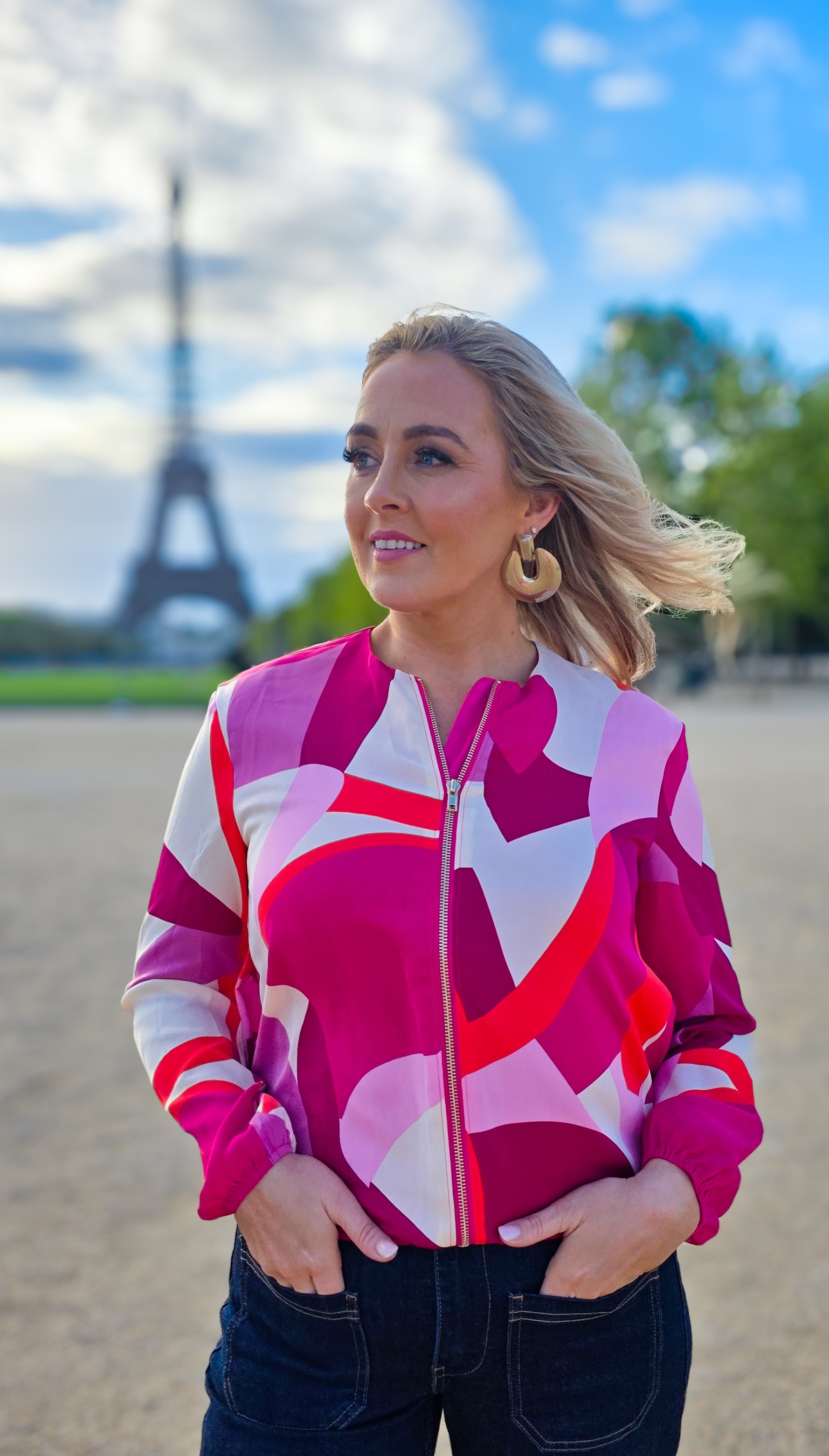 One of our best selling style jacket introducing the Samantha Bomber, featuring a chic pink lining and luxurious gold zipper. This jacket is a customer favorite and one of our top sellers.