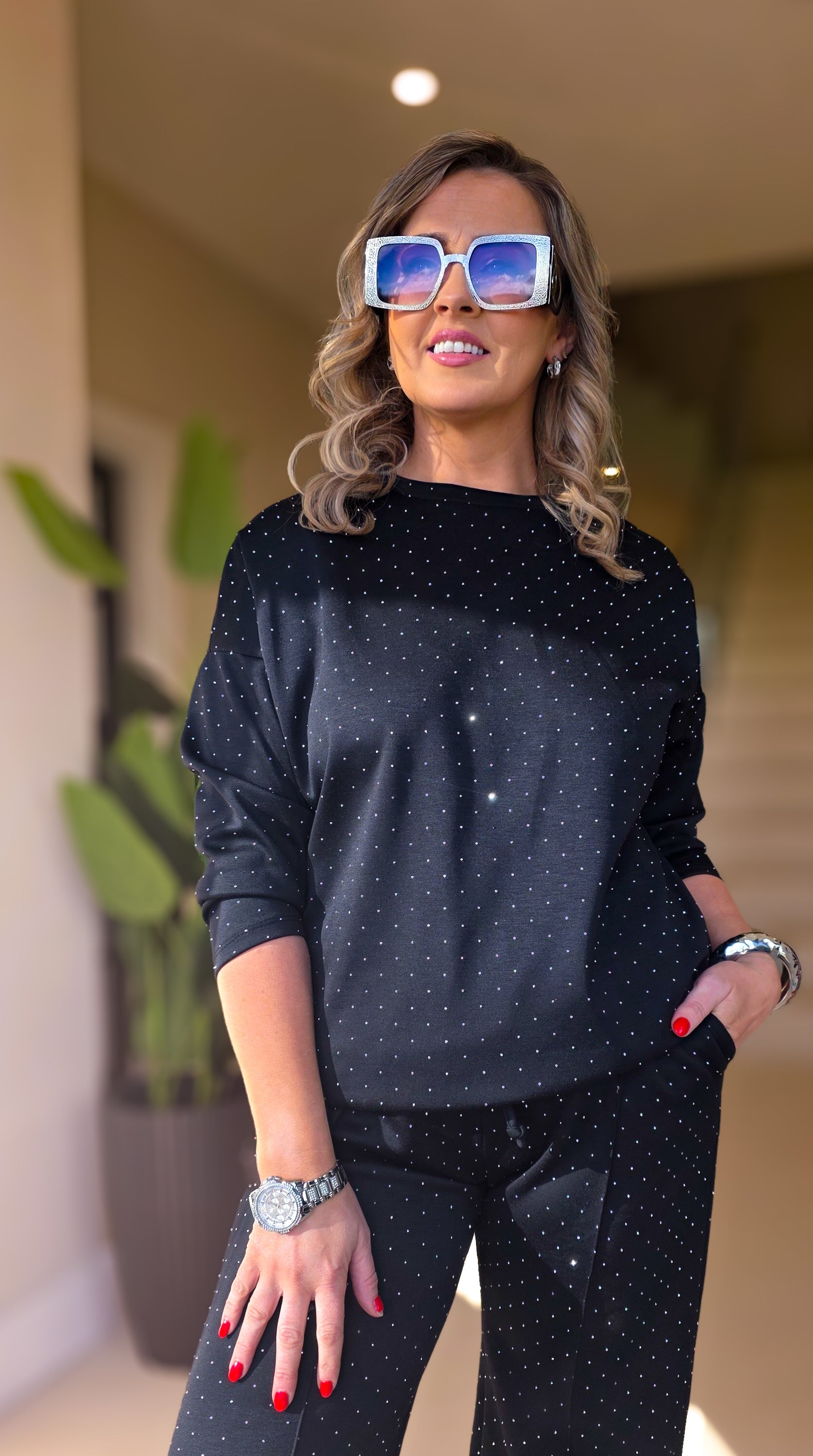 Make a statement in this Kylie Sweater designed with eye-catching sparkle details that bring effortless elegance to any occasion. The shimmering embellishments add just the right amount of glamour while maintaining the comfort and versatility you need. Embrace your confidence and shine in style.