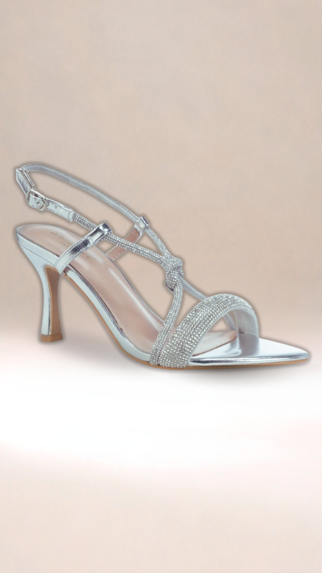 Elegant pointed toe heel featuring sparkling Diamante straps.