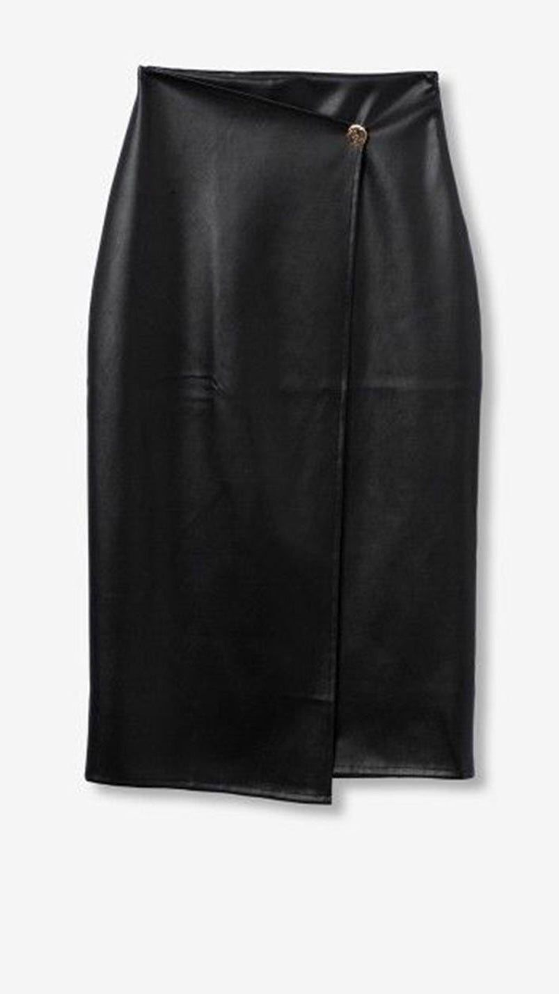The Camy skirt features a stylish faux leather design and a flattering midi length.