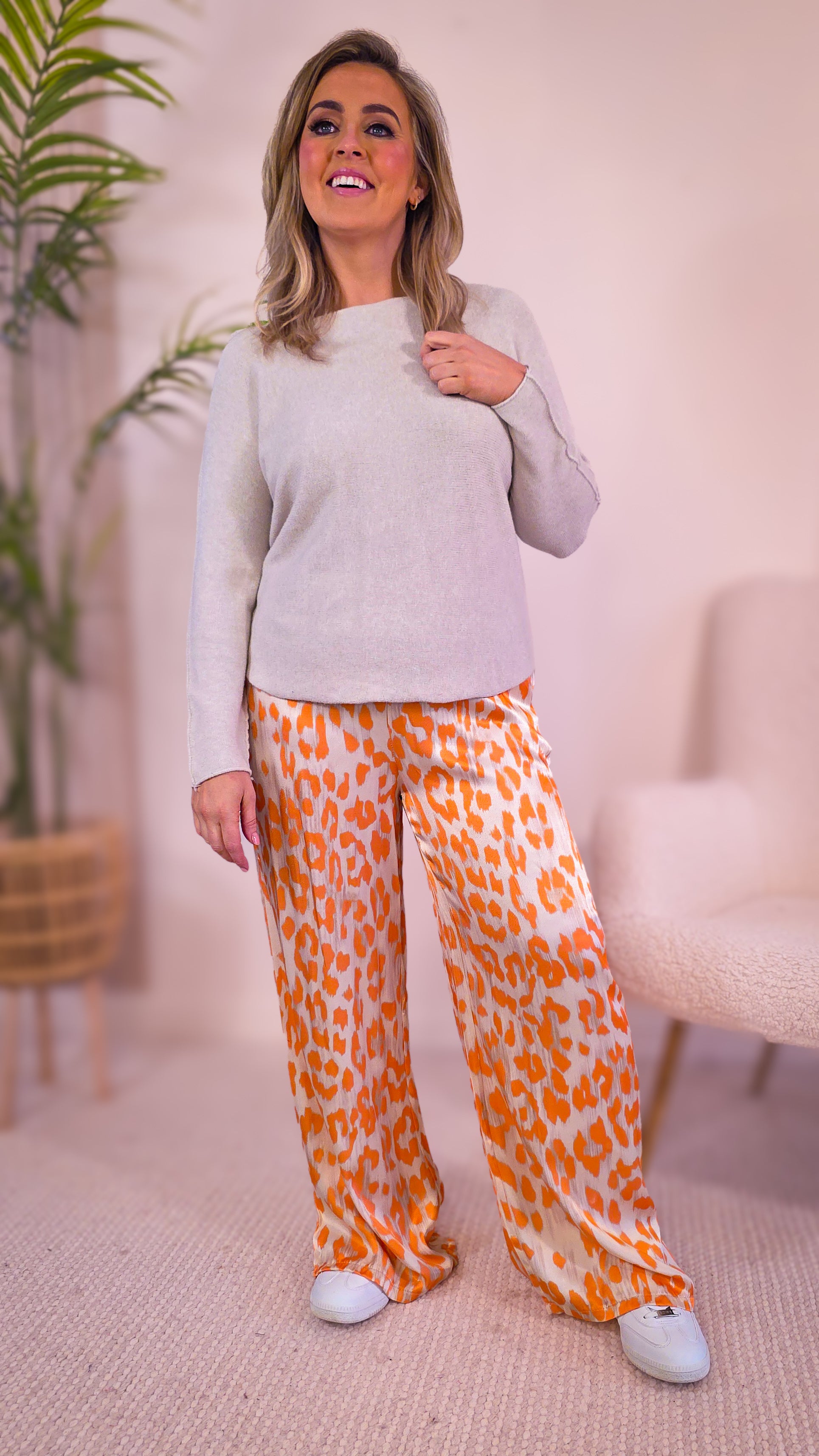 Elevate your wardrobe with the Tammy Trousers in Orange. These statement trousers feature a bold leopard print design that pairs beautifully with our matching bomber jacket for a coordinated, fashion-forward look. Perfect for creating effortless style moments, whether you're dressing up for an occasion or keeping it casual.